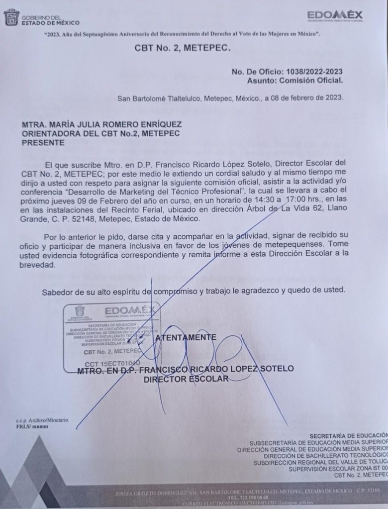 Entre las pruebas se mencionan evidencias periodísticas, según las cuales, el día 10 de febrero del presente año, se tuvo conocimiento a través de distintos medios de comunicación de un evento realizado en Metepec, Estado de México, por parte de la precandidata del Partido Revolucionario Institucional, Alejandra del Moral Vela, donde se detectó la presencia de estudiantes de CBT 2 Metepec.