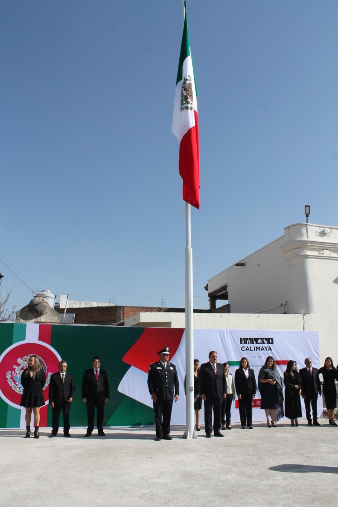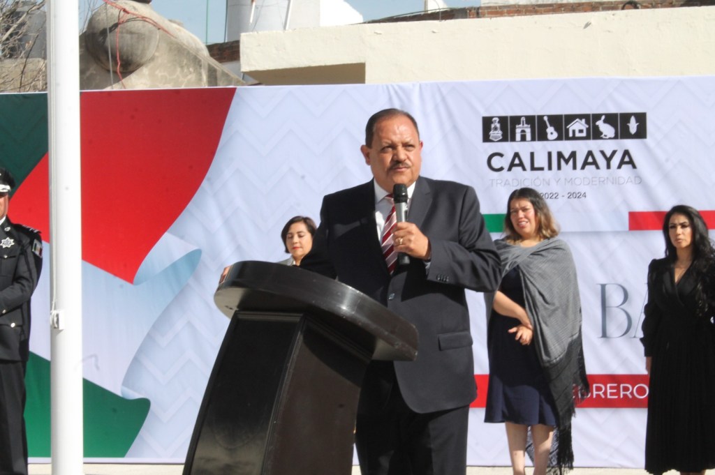 Cuando la sociedad y los gobiernos encontramos identidad en un proyecto que se llama México, se pueden lograr obras y acciones que trascienden y ese es el caso de Calimaya, hoy la bandera nos convoca a salir a dar un solo frente” ; afirmó el Presidente Municipal Óscar Hernández Meza al encabezar la conmemoración al Día de la Bandera.