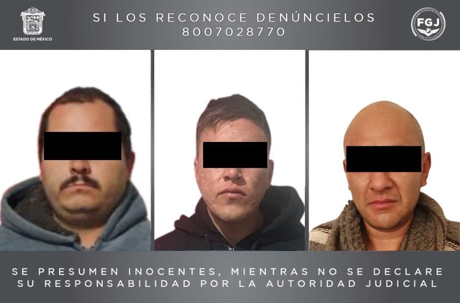 Agentes de la Fiscalía General de Justicia del Estado de México (FGJEM) cumplimentaron órdenes de aprehensión en contra de tres individuos, quienes son investigados por su probable participación en el delito de robo de vehículo con violencia.