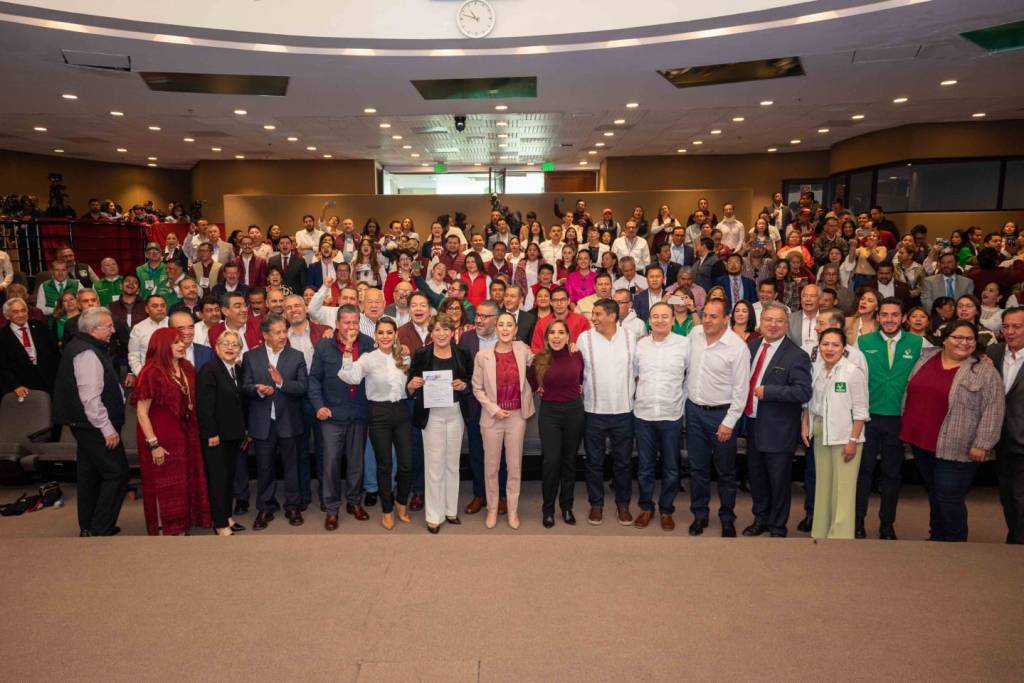 De igual manera, la maestra Delfina Gómez fue arropada por consejeras y consejeros nacionales de MORENA: Claudia Sheinbaum, jefa de gobierno de la Ciudad de México; Mara Lezama, gobernadora de Quintana Roo; Evelyn Salgado, de Guerrero; Layda Sansores, de Campeche; Salomón Jara, gobernador de Oaxaca; Alfonso Durazo, de Sonora; Alfredo Ramírez Bedolla, de Michoacán; David Monreal, de Zacatecas; Cuauhtémoc Blanco, de Morelos; Víctor Castro, de Baja California Sur; Rubén Rocha, de Sinaloa y Sergio Céspedes, de Puebla.