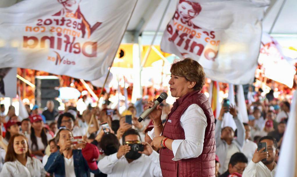 Mientras los miles gritaban “¡Maestros con Delfina!” y ella atizaba la emoción con el puño arriba y un contundente “¡Delfina con maestros!”, la candidata morenista reiteró el rescate del ISSEMyM, como una necesidad que por derecho le corresponde al magisterio del Estado de México.