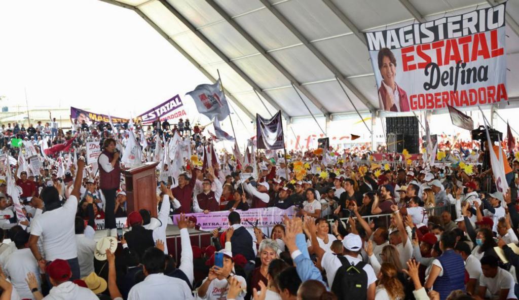 Ante más de 40 mil integrantes del magisterio mexiquense, la candidata a gobernadora por MORENA, PT y PVEM, la maestra Delfina Gómez reiteró que asume “como propias cada una de sus luchas. Por eso el Gobierno del Estado de México dejará de ser un obstáculo para convertirse en uno de ustedes”.