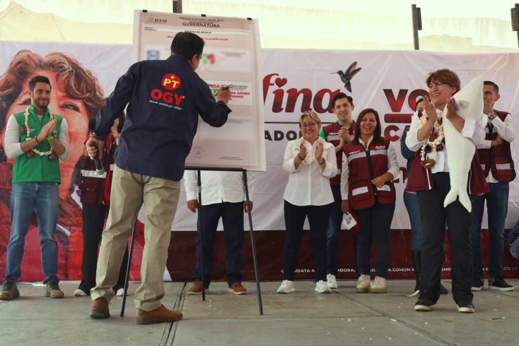 Marcando con una cruz el recuadro con el nombre de la maestra Delfina Gómez, quien encabeza la candidatura común “Juntos Hacemos Historia en el Estado de México”, Óscar González indicó que este 4 de junio “así se vota por la esperanza, la dignidad y la libertad del Estado de México.”, dijo.