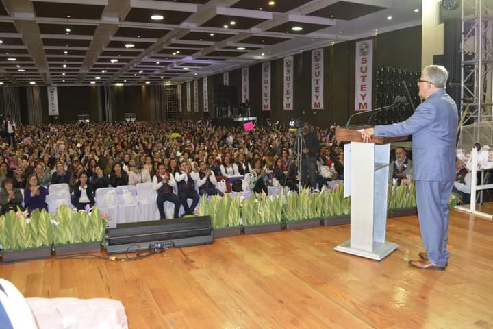 Zinacantepec, Estado de México.- Alegría y entusiasmo desbordado reinaron en el festejo del Día de las madres, que organizó el Sindicato Único de Trabajadores de los Poderes, Municipios e Instituciones Descentralizadas del Estado de México (SUTEyM), encabezado por Herminio Cahue Calderón, secretario general de la organización.