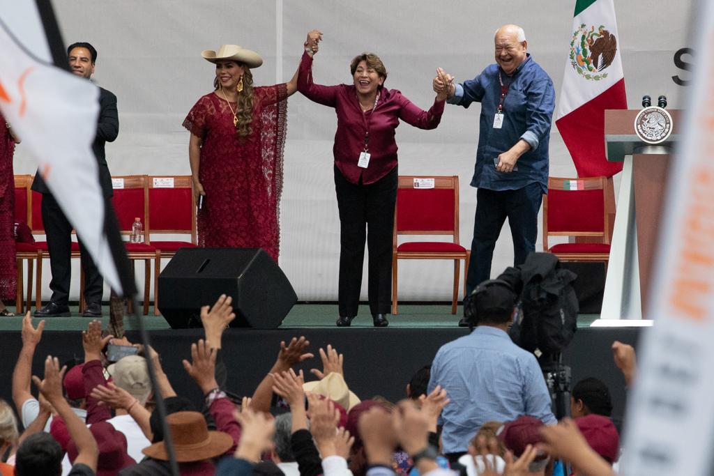 Ante un Zócalo capitalino lleno, la maestra Delfina Gómez agradeció a la ciudadanía por confiar en la Cuarta Transformación.