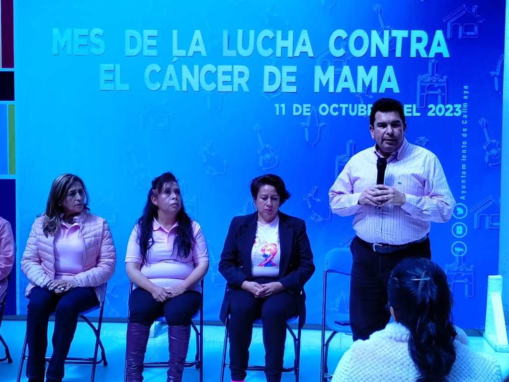 En el marco del «Mes de la Lucha Contra el Cáncer de Mama» y acompañado por María de Lourdes Vergara Gómez, Presidenta Honoraria del Sistema DIF Municipal, así como vecinas y trabajadoras del ayuntamiento, el Regidor precisó que la medida más efectiva para atajar al cáncer de mamá es la detección, por ello la administración municipal realizó un acuerdo con el sector privado para que esta acción pueda ser realizada por las mujeres de Calimaya.