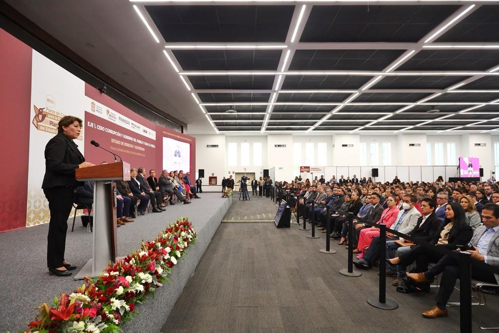 La Maestra Delfina Gómez puntualizó que el Primer Foro, que es coordinado por la Secretaría de la Contraloría, está enfocado al Eje “Cero Corrupción y Gobierno del Pueblo y para el Pueblo”, un tema que por décadas ha lastimado a la sociedad y principal demanda de la ciudadanía en su campaña.