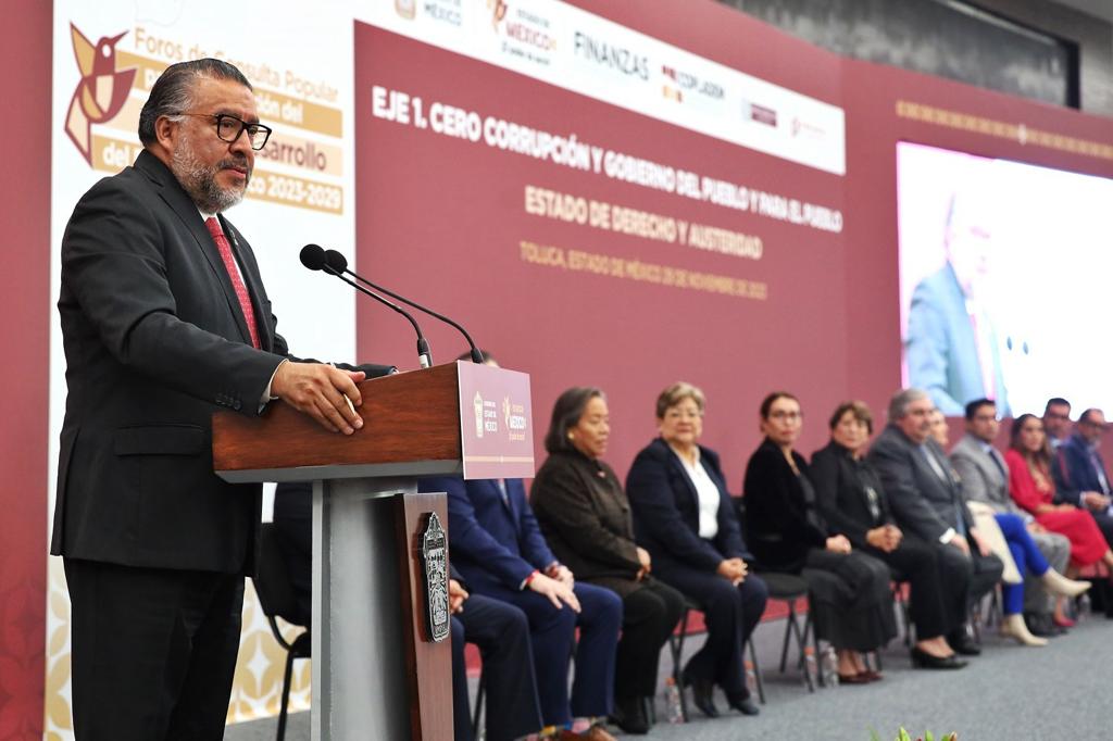 Al dar la bienvenida al Primer Foro, Horacio Duarte Olivares, Secretario General de Gobierno del Estado de México, señaló que, a diferencia del pasado, el proceso de elaboración del Plan de Desarrollo del Estado de México (2023-2029), representa un acto de reivindicación histórica para quienes fueron excluidos por décadas.