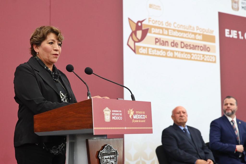 TOLUCA, Estado de México.- La Gobernadora del Estado de México, Delfina Gómez Álvarez inauguró los Foros de Consulta Popular para la elaboración del Plan de Desarrollo del Estado de México 2023-2029, el cual busca ser el reflejo de cada propuesta de las y los mexiquenses para lograr la transformación de la entidad.