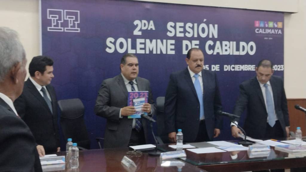 Calimaya, Estado de México, 5 de diciembre de 2023.- Óscar Hernández Meza, presidente municipal de Calimaya, entregó a las y los integrantes del Cabildo toda la información relacionada con su Segundo Informe de Gobierno correspondiente al año 2023, donde detalla cada una de las obras que ha realizado las diferentes áreas de la administración, así como los organismos descentralizados como el Odapas e Imcufidec.