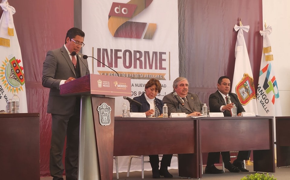 Tenango del Valle, EDOMEX, 6 de diciembre de 2023. El presidente municipal de Tenango del Valle, Roberto Bautista Arellano, rindió su segundo informe de gobierno acompañado de la gobernadora constitucional, Delfina Gómez Álvarez y de Ricardo Sodi Cuellar, Presidente del Tribunal Superior de Justicia y del Consejo de la Judicatura del Poder Judicial del Estado de México.