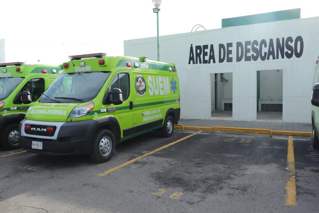 ECATEPEC, Estado de México.- Rodrigo Rodríguez Briseño, Coordinador de Salud del Instituto de Salud del Estado de México (ISEM), en representación de la doctora Macarena Montoya, titular de la Secretaría de Salud, constató que 71 ambulancias del SUEM cuentan con el lazo naranja, que las acredita para auxiliar a quienes sean víctimas de agresiones, acto en el que también se inauguró el área de descanso para personal de este organismo.