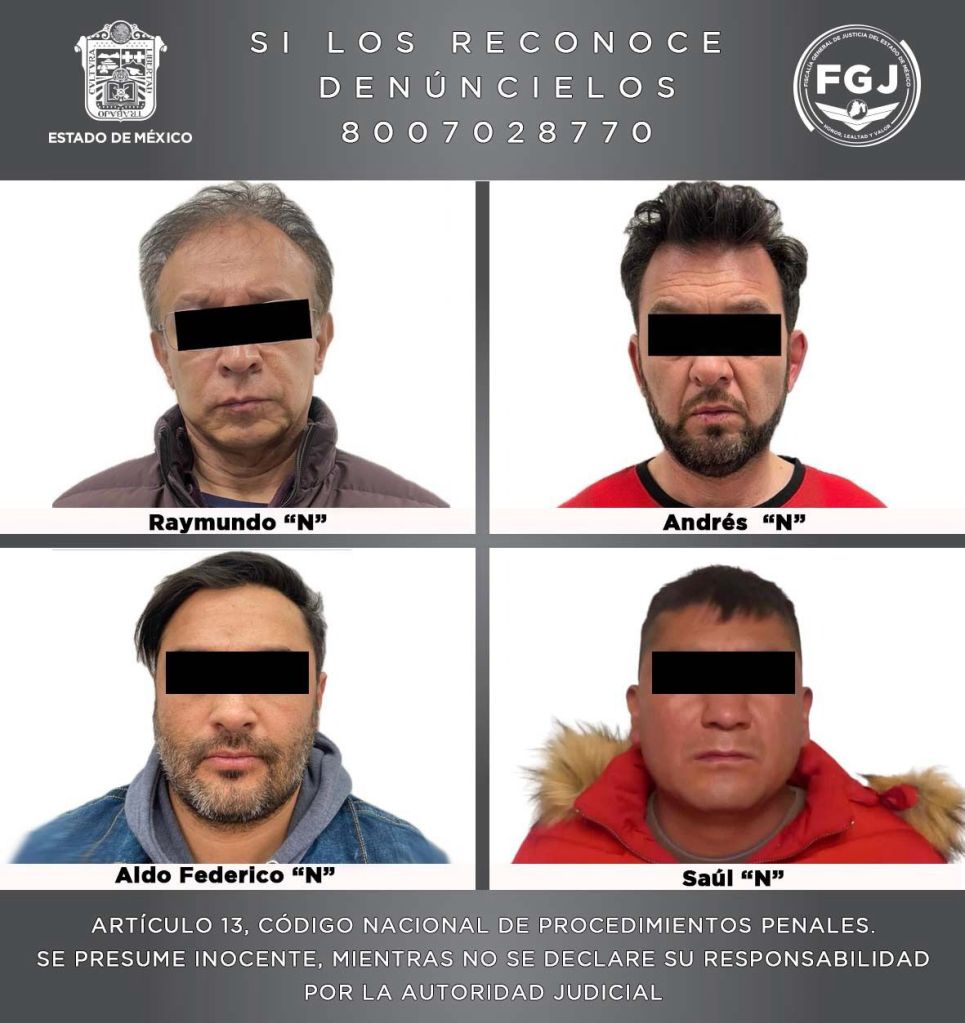 Con los indicios recabados, la Fiscalía del Estado de México solicitó a la Autoridad Judicial, orden de aprehensión en contra de Raymundo “N”, así como Andrés “N” y Saúl “N”, quienes, en la fecha de la comisión de los actos presuntamente constitutivos de delito, se desempeñaban como servidores públicos del Ayuntamiento de Toluca, Andrés “N” era Coordinador de Asesores de Raymundo “N”, y Saúl “N” fungía como policía municipal. También se obtuvo orden de aprehensión en contra de tres sujetos por los mismos hechos.