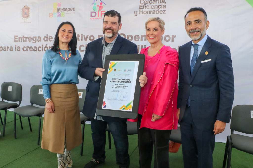 En las instalaciones del Jardín de Niños “Luisa Isabel Campos”, la organización Open Doors que liderea el ministro Troy Brewer y su esposa Leanna Brewer, entregaron el donativo al Sistema para el Desarrollo Integral de la Familia Metepec, para la creación de la primera Clínica, “Familias Felices”, para apoyar entre otras tareas, a dar espacio a menores que sufren maltrato y violencia, atender a quien está en situación o riesgo de calle y otorgar un sistema integral psicológico, entre otras.