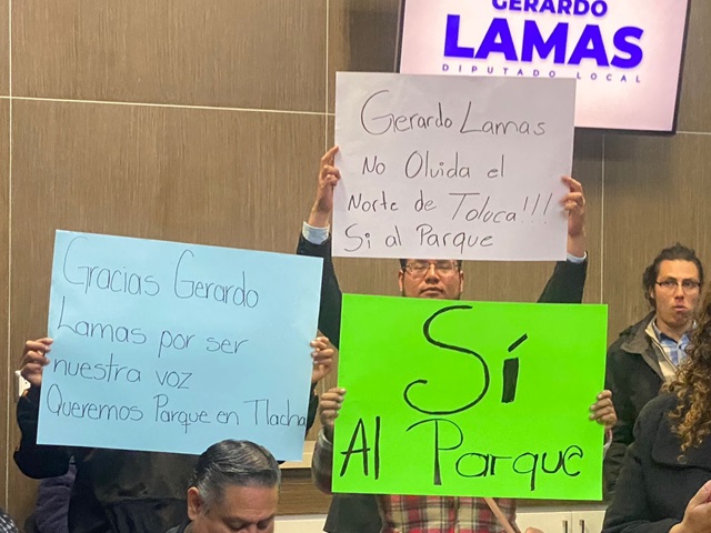 Gerardo Lamas Pombo, diputado del Grupo Parlamentario del Partido Acción Nacional (PAN), informó a la sociedad de Toluca que en días pasados se aprobó una petición, al que hoy se sumaron delegados y subdelegados de la zona norte de Toluca, a través del cual se solicita la colaboración de Delfina Gómez Álvarez, titular del Poder Ejecutivo estatal para que de forma conjunta soliciten la donación de un predio por parte del Gobierno Federal, con el objetivo de que en dicho espacio verde ubicado entre Tlachaloya primera sección y El Cerrilo Piedras Blancas, se ubique uno de los pulmones más grandes de la región.