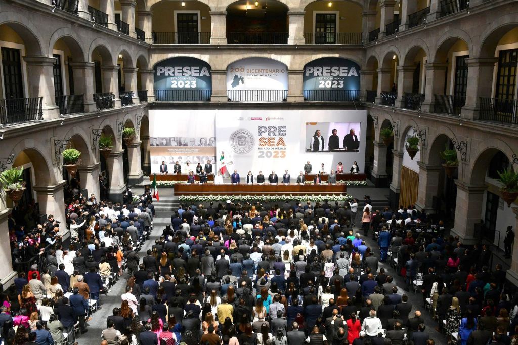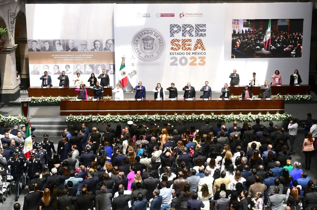 En la ceremonia de entrega de la Presea 2023, efectuada al interior de Palacio del Poder Ejecutivo Estatal, estuvieron presentes los titulares de los tres Poderes del Gobierno del Estado de México, así como el Gabinete legal y ampliado, representantes del sector empresarial y organizaciones de la sociedad civil.