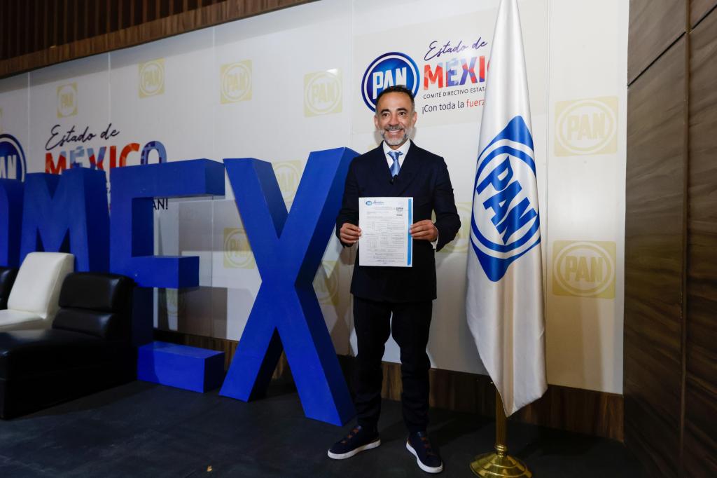 Naucalpan, Estado de México, 13 de abril de 2024.- Fernando Flores Fernández, alcalde de Metepec con licencia temporal, acudió a la sede estatal del Partido Acción Nacional (PAN) para registrarse como candidato de ese partido con el objetivo de buscar reelegirse en el cargo.