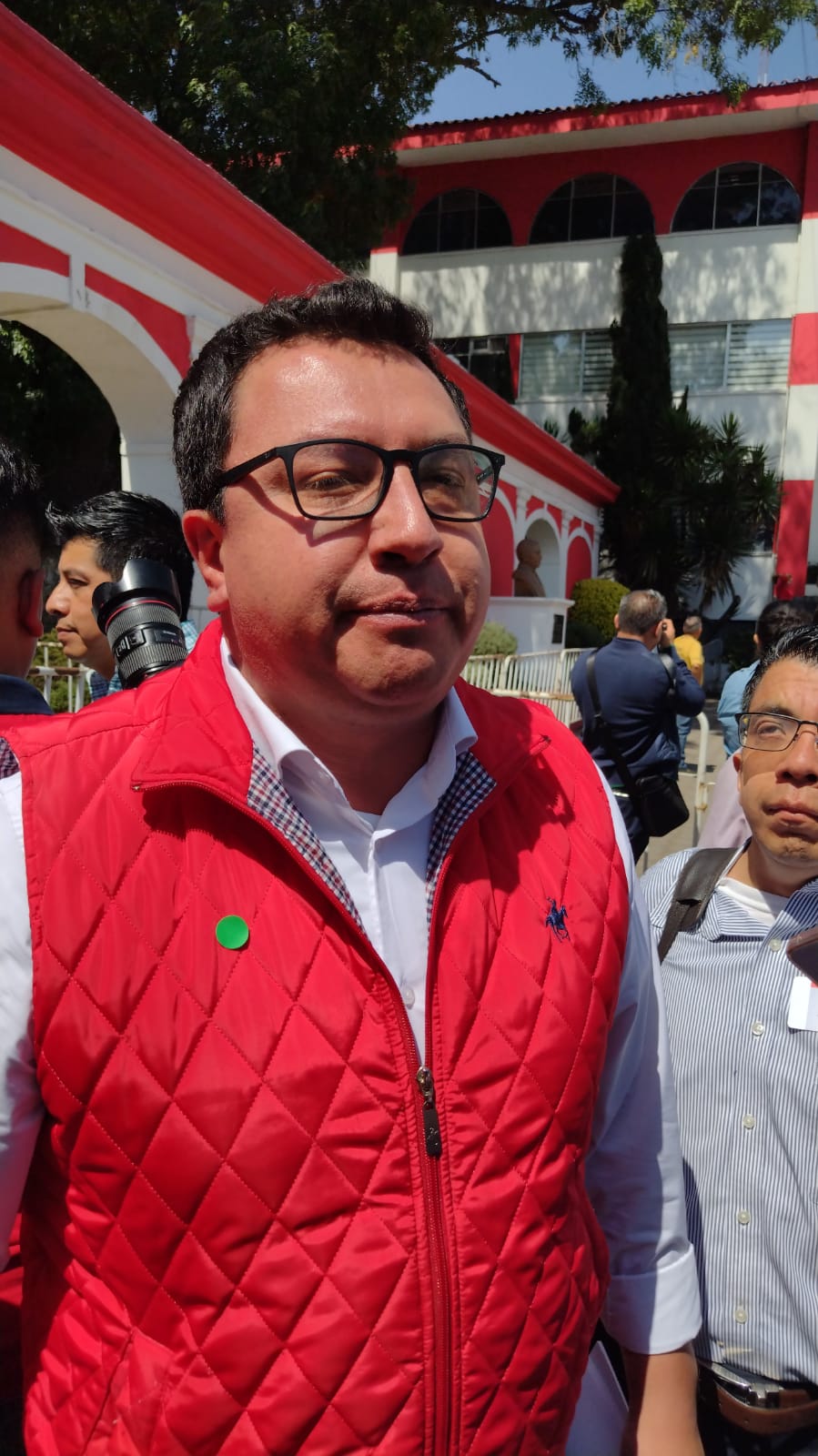 Toluca, Estado de México, 14 de abril de 2024.- Miguel Angel Ramirez Ponce, presidente municipal de Lerma, se registró en el Comité estatal del PRI para buscar la reelección a la presidencia municipal por la alianza electoral conformada por el PAN y PRD.