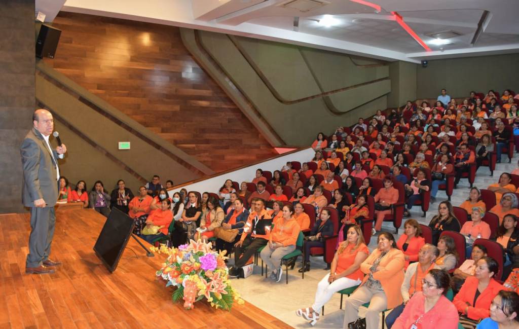Toluca, Estado de México, 25 de abril de 2024. Con el objetivo de conmemorar el “Día Naranja”, el Sindicato Único de Trabajadores de los Poderes, Municipios e Instituciones Descentralizadas del Estado de México (SUTEYM), a través de la Secretaría de Acción Femenil, realizó la conferencia: “Madre trabajadora, ¿una combinación que te hace plena?”, que fue impartida por el especialista en Psicología Alejandro Gutiérrez Cedeño.