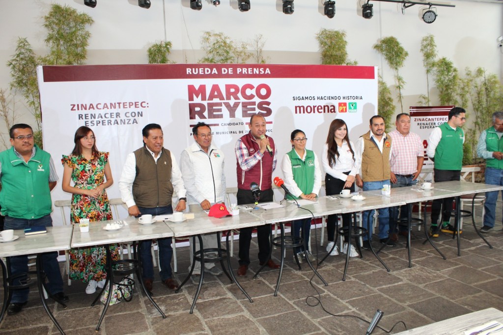 En conferencia de prensa Marco Reyes puntualizó que su proyecto representa inclusión política y unidad de todos los sectores de la población; garantizó que su plan de gobierno permitirá el inicio de la verdadera transformación para Zinacantepec y el fin al saqueo y negocios familiares del actual gobierno.