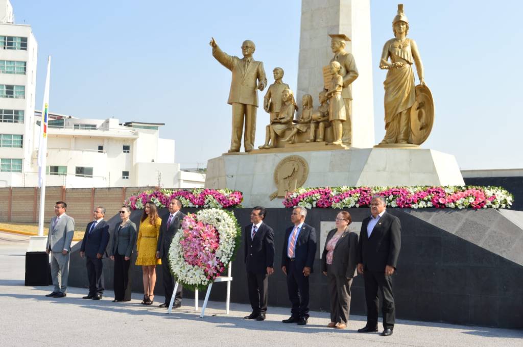 Las notas del Himno al Magisterio Estatal y la guirnalda bajo el Monumento que inauguramos hace un año, se precisó en el evento, fue el escenario perfecto para que Marco Aurelio felicitara a la Gobernadora del Estado de México, Delfina Gómez Álvarez, reconociéndola como la primera mujer en alcanzar la titularidad del poder ejecutivo estatal y la segunda en ejercer el cargo siendo de formación normalista.