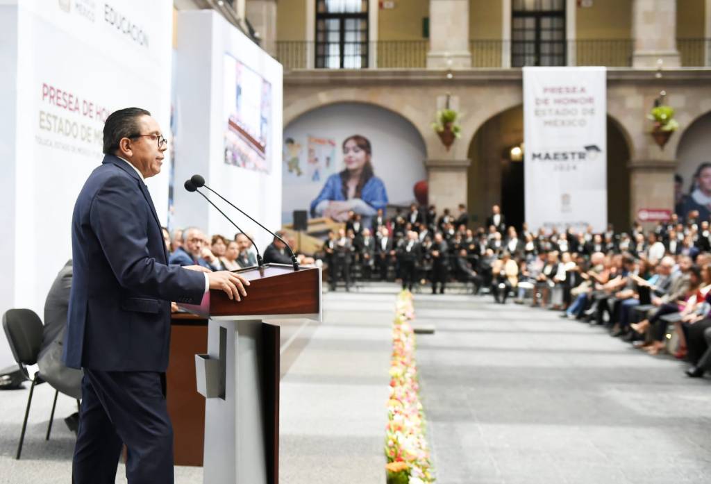 Mientras que Miguel Ángel Hernández Espejel, Secretario de Educación, Ciencia, Tecnología e Innovación, puntualizó que los reconocimientos que se entregaron simbolizan el valor que tiene el magisterio para el gobierno estatal y toda la sociedad mexiquense, porque sin educación no hay transformación.