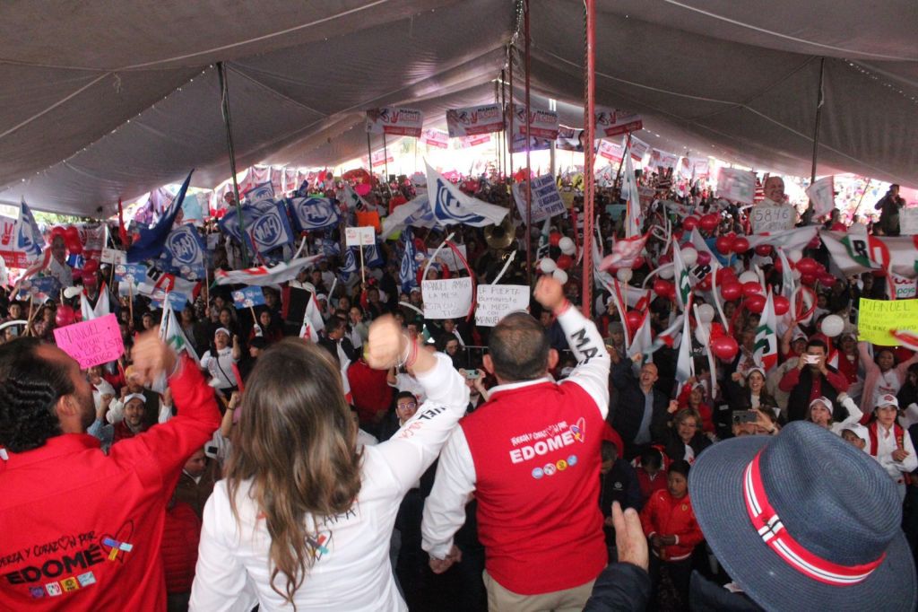 Zinacantepec, Estado de México.- En un ambiente de fiesta partidaria, «Llegamos fuertes y unidos, con la seguridad de que vamos a triunfar de manera contundente el 2 de junio, estamos a tan sólo cuatro días de ganar la presidencia», aseveró Manuel Vilchis Viveros candidato a la presidencia municipal de Zinacantepec, en su cierre de campaña.