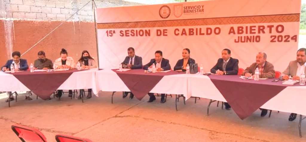 Xonacatlán, Estado de México, 28 de junio de 2024.- Alfredo González González, presidente municipal de Xonacatlán, encabezó la XV Sesión de Cabildo Abierto realizada en la Ranchería de Dolores ante decenas de vecinas y vecinos que participaron y plantearon sus preocupaciones, propuestas y exigencias; también se congratularon de que su gobierno local acuda a la comunidad para escuchar de viva voz las demandas.