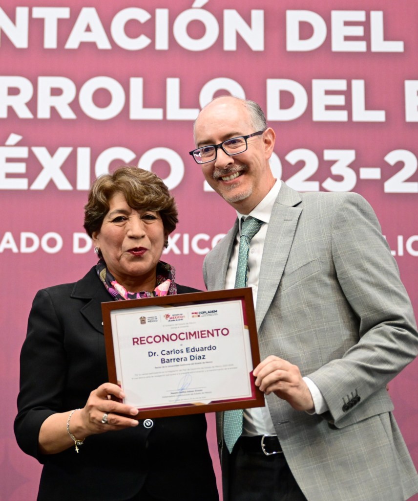 En esta ceremonia, la Mandataria mexiquenses entregó reconocimientos a quienes colaboraron en el análisis de las propuestas para integrar el Plan de Desarrollo del Estado de México 2023-2029 que contiene el mandato del pueblo por el cambio.