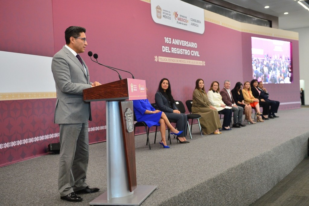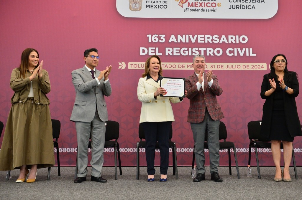 TOLUCA, Estado de México.- La vida jurídica de todas las personas comienza en el Registro Civil, con el derecho a la identidad, un derecho universal, único, irrenunciable e intransferible, bajo esa premisa se conmemoró el 163 aniversario del Registro Civil del Estado de México, al tiempo que se anunció una mejora en los ingresos de las personas servidoras públicas que laboran en este.