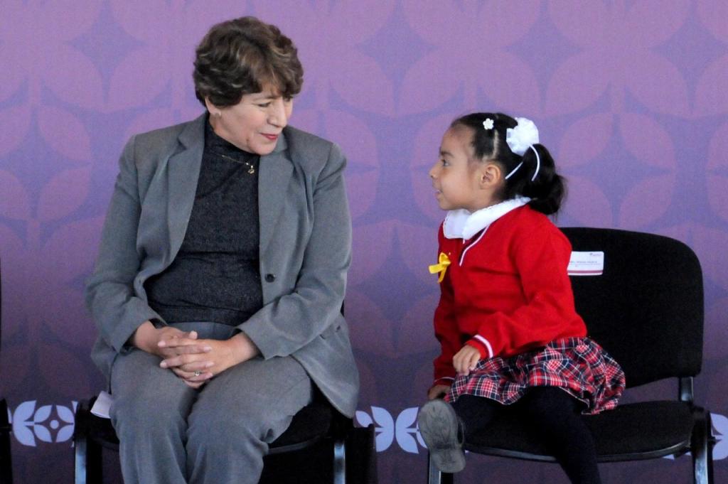 “Yo quiero decirles que yo vengo muy contenta porque al entrar aquí a San Pablito Calmimilolco, Chiconcuac me acordé que efectivamente, les cuento mi historia, fíjense que yo salí de la Normal de Texcoco y entonces cuando me dieron mi nombramiento y nos dijeron sabe qué compañera, le toca en una escuela que se llama Dr. Gustavo Baz que se encuentra en San Pablito Calmimilolco, Chiconcuac y cuando yo vi esa hoja junto con otros ocho o 10 compañeros me quedé pensando cómo será esa escuela, cómo serán los niños, cómo será nuestro director y cuando llegué aquí casi llegué para quedarme”, relató la Gobernadora Delfina Gómez Álvarez en presencia de niñas y niños que este lunes regresaron a las aulas.
