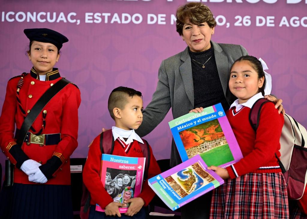 Chiconcuac, Estado de México, 26 de Agosto de 2024. – Comprometida con más de 2.8 millones de estudiantes de educación básica que regresaron a las aulas, la Gobernadora Delfina Gómez Álvarez dio inicio al Ciclo Escolar 2024-2025, desde la Escuela Primaria “Dr. Gustavo Baz” en el municipio de Chiconcuac, escuela donde hace 40 años comenzó su carrera como docente.