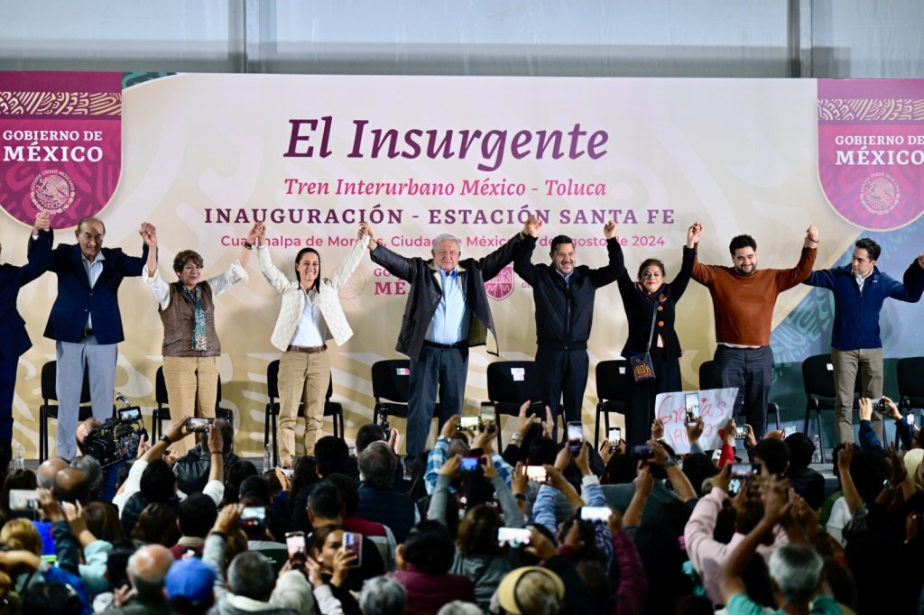 CUAJIMALPA, Ciudad de México.- La Gobernadora del Estado de México, Delfina Gómez Álvarez acompañó al Presidente Andrés Manuel López Obrador en la inauguración de la Estación Santa Fe, del Tren Interurbano México-Toluca “El Insurgente”.