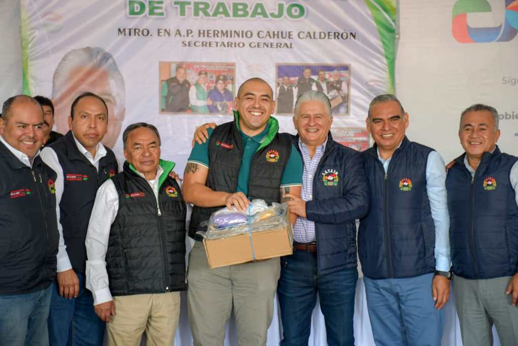 Cuautitlán Izcalli, Estado de México, 6 de septiembre de 2024. Herminio Cahue Calderón, Secretario General del Sindicato Único de Trabajadores de los Poderes, Municipios e Instituciones Descentralizadas del Estado de México (SUTEYM), finalizó la entrega de equipo de trabajo y chalecos institucionales a servidores públicos agremiados que laboran en el Sector Central.
