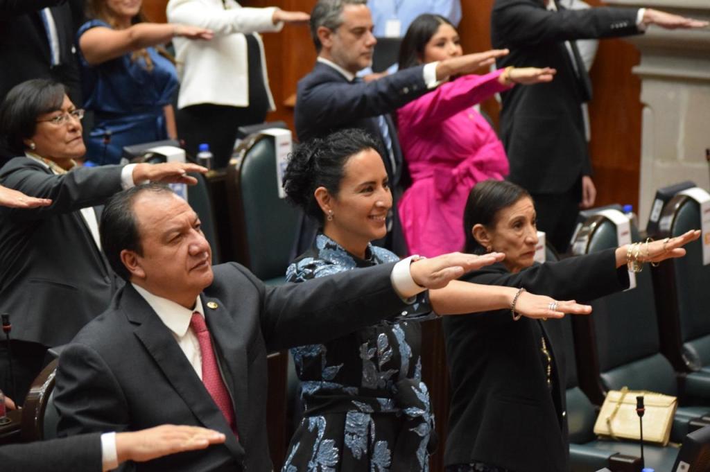 La bancada queda conformada por Yareli Anaí Esparza Acevedo, María del Consuelo Estrada Plata, Isaac Hernández Méndez, Ana Yurixi Leyva Piñón, Sofía Martínez Molina, Gabriel Kalid Mohamed Báez, Sara Ramírez de la O, Ernesto Santillán Ramírez y Óscar González Yáñez, siendo éste último el Coordinador de la fracción y quien mencionó que como bloque tienen la responsabilidad con el Pueblo mexiquense de participar activamente para que la Transformación se consolide de la mejor manera en la entidad y en el país haciendo equipo con la Gobernadora, Delfina Gómez Álvarez y con nuestra Presidenta electa, Claudia Sheinbaum Pardo, mediante acciones legislativas que deriven en verdadero bienestar para el Estado de México, «Nosotros tenemos la responsabilidad de apoyar al gobierno de la maestra Delfina, siendo críticos pero apoyando a la Transformación.», aseguró.