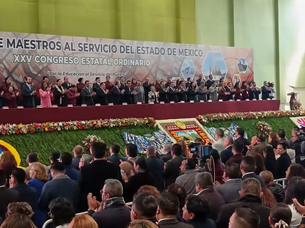 Toluca, Estado de México, 30 de Octubre de 20224. – Marco Aurelio Carbajal Leyva, Secretario General del Comité Ejecutivo Estatal 2021-2024 del Sindicato de Maestros al Servicio del Estado de México (SMSEM), encabezó la inauguración del XXV Congreso Estatal Ordinario de la organización ante miles de maestros.