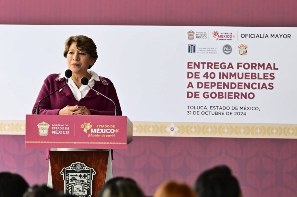 TOLUCA, Estado de México.- En un hecho histórico y tras 35 años de abandono, la Gobernadora Delfina Gómez Álvarez inició el rescate de inmuebles de la Administración Pública Estatal, con la entrega de 40 bienes que serán distribuidos entre la Fiscalía General de Justicia (FGJEM); la Secretaría de la Defensa Nacional (Sedena); el Tribunal de Justicia Administrativa (TRIJAEM) y el Sindicato Único de Trabajadores de los Poderes, Municipios e Instituciones Descentralizadas del Estado de México (SUTEyM).
