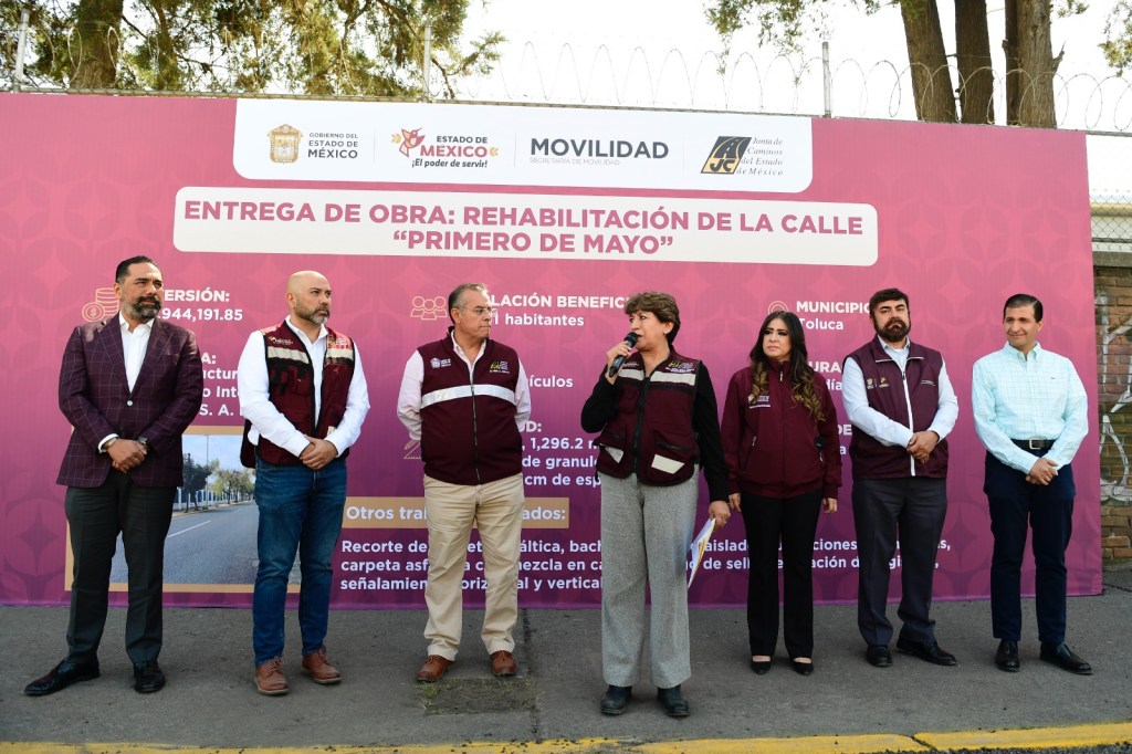Mientras que, en Toluca, la Gobernadora Delfina Gómez Álvarez entregó la rehabilitación de la calle Primero de Mayo, desde Rafael Alducín hasta la Av. Alfredo del Mazo. En estos trabajos se invirtieron 11 millones 944 mil pesos y beneficiará a 8 mil automovilistas y 11 mil 761 habitantes.