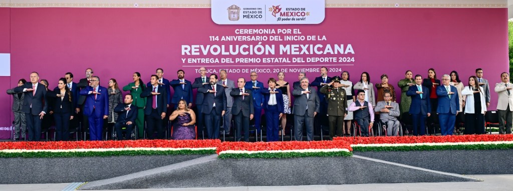 Toluca, Estado de México.- Al encabezar la Ceremonia Conmemorativa al 114 Aniversario del Inicio de la Revolución Mexicana, la Gobernadora del Estado de México, Delfina Gómez Álvarez entregó el Premio Estatal del Deporte 2024 a destacados atletas mexiquenses.
