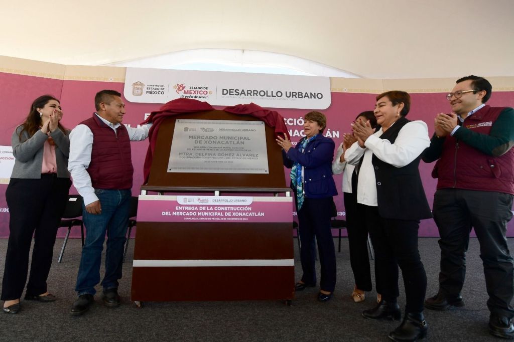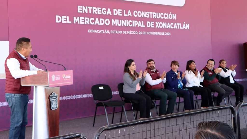 Xonacatlán, Estado de México, 26 de Noviembre de 2024.- Alfredo González González, alcalde de Xonacatlán, se congratuló de la visita de la Maestra Delfina Gómez Álvarez, gobernadora del Estado de México, para atestiguar la inauguración de la primera etapa del Mercado Municipal de Xonacatlán, inmueble que en un periodo de tres meses logró consolidarse luego de que en 2022 su administración, con recursos propios, adquirió el predio de 17 mil metros cuadrados para edificar el Mercado.