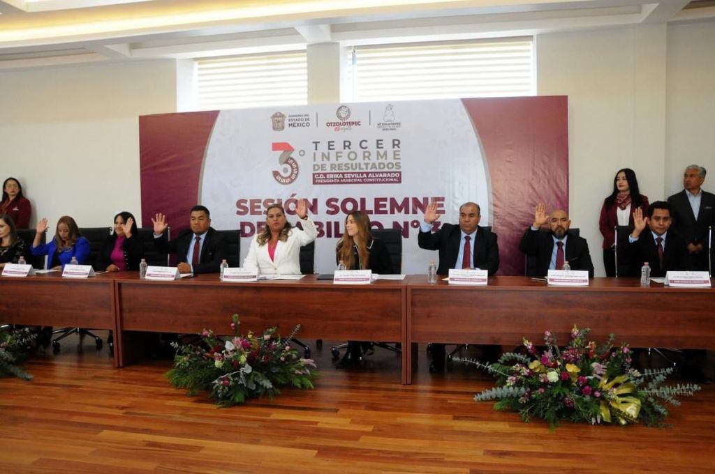 La alcaldesa de Morena presentó su tercer informe de gobierno correspondiente al segundo periodo de administración continúa resaltando, en sesión solemne de cabildo, que su gestión ha derivado en un «Otzolotepec más justo» y en un cambio significativo que ha impactado la vida de sus habitantes.