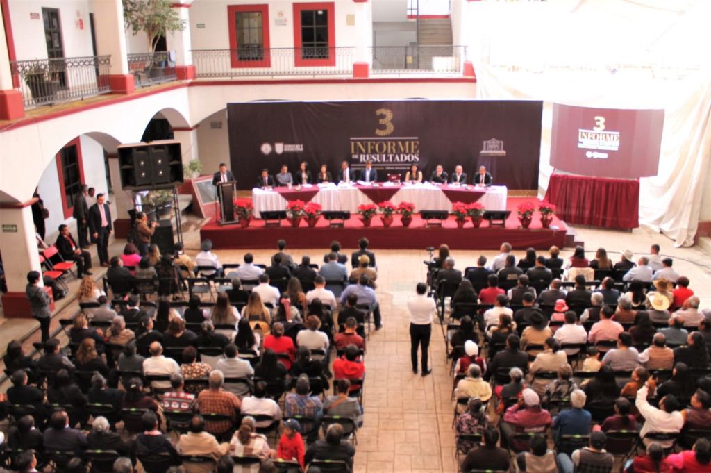 Xonacatlán, Estado de México, 6 de diciembre de 2024.- Al gran proceso de transformación que emprendí junto con miles de ciudadanas y ciudadanos de Xonacatlán nadie lo podrá parar, hay avances sustanciales en el municipio, pero también hay enormes retos por delante y problemas que solucionar y atender, sentenció Alfredo González González, presidente municipal de Xonacatlán, al rendir su Tercer Informe de Resultados de gobierno.