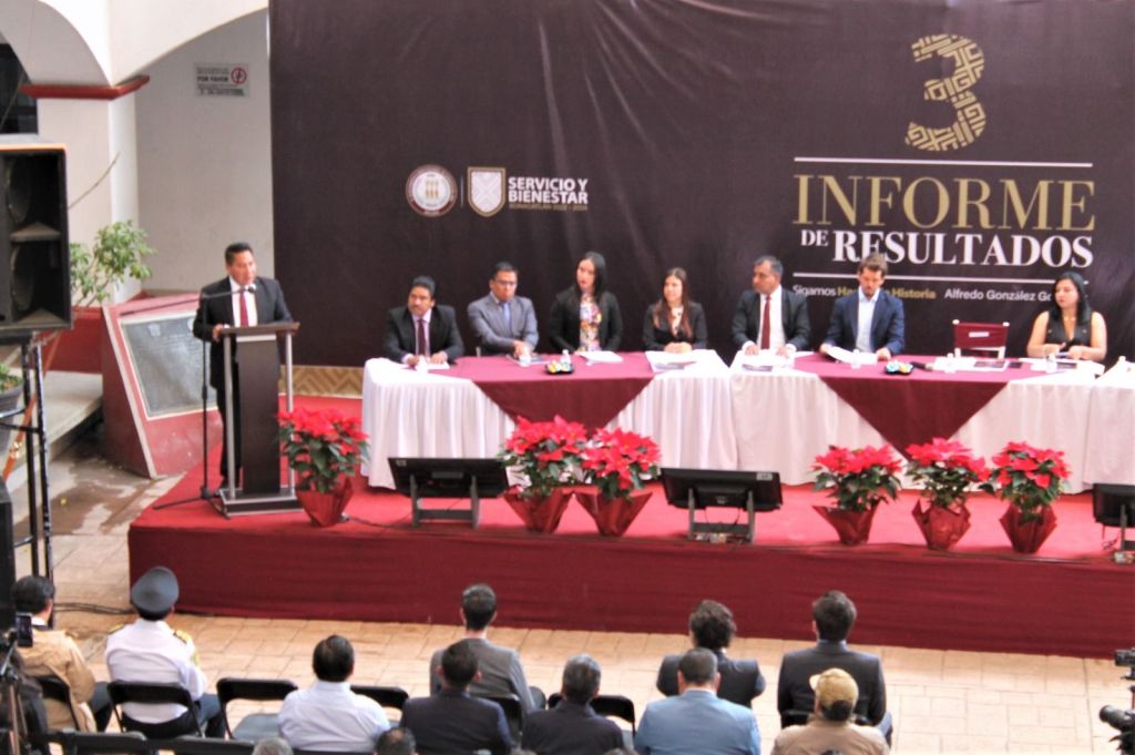 Desde el patio central de Palacio Municipal el alcalde morenista Alfredo González, como en todas sus intervenciones a lo largo de su gestión, ratificó a la población, así como a las decenas de personas que a la distancia observaban el Informe, vía redes sociales de Aquí y Allá, que él nunca le gusto la parafernalia del poder y entendió perfectamente que la titularidad de un ayuntamiento se llega solo para servir y esa fue su principal función todos los días, servir a la comunidad: