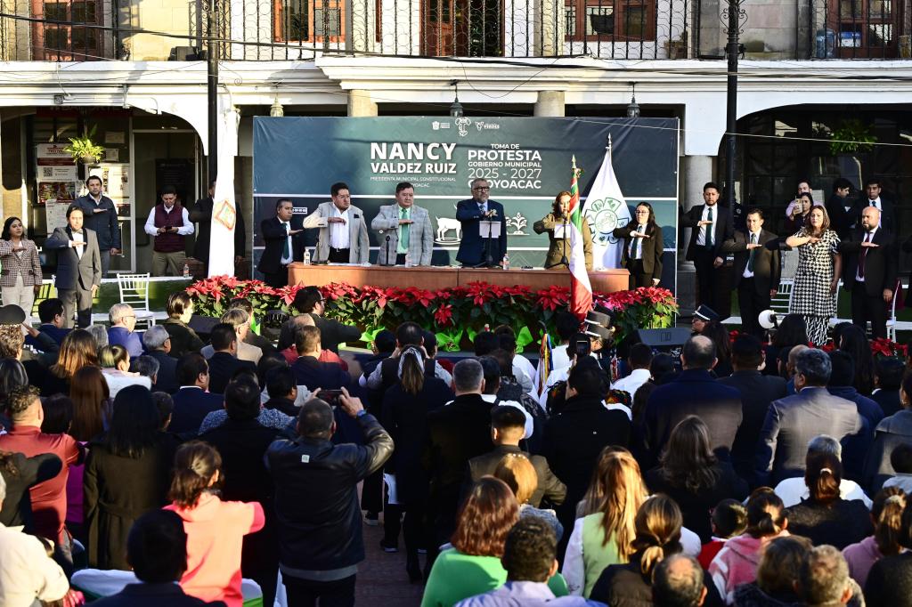 Al tomar protesta como alcaldesa de Ocoyoacac, Nancy Valdez Ruiz, dijo a la población, integrantes del Cabildo y colaboradores «venimos a trabajar» y mejorar las condiciones de todo el municipio y la población, aseguró que mantendrá una colaboración directa con el Gobierno de México y del Estado de México para que en unidad se impulsen proyectos y servicios público para lograr un municipio más justo y equitativo.