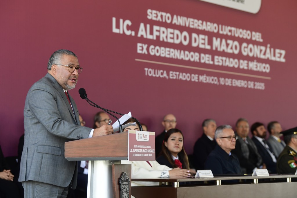 En el evento, presidido por la Gobernadora Delfina Gómez Álvarez, donde estuvieron presentes Carmen Maza Del Mazo, viuda de Del Mazo González y Alfredo del Mazo Maza, hijo del homenajeado, Horacio Duarte Olivares llamó a consolidar la historia mexiquense con el presente y a rescatar lo mejor de ella para continuar trabajando por un Estado de México grande, fuerte y digno.