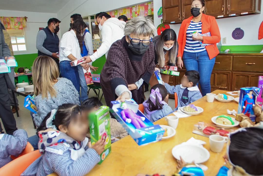 “El día de hoy en compañía de mi madre María del Carmen Espinoza, la Presidenta Honorífica del DIF, compartimos la Rosca de Reyes y les entregamos juguetes que los Reyes Magos les dejaron… les recordamos que las niñas y los niños siguen siendo nuestra prioridad”, precisó Saray Benítez, alcaldesa de Mexicaltzingo.