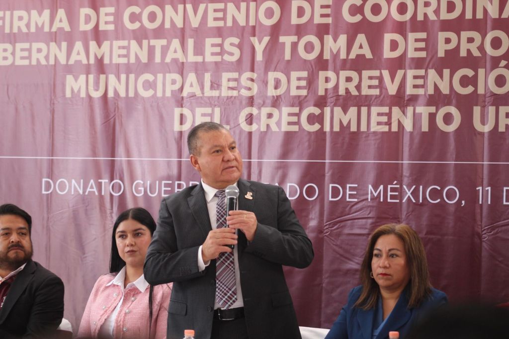 En representación de la Gobernadora Delfina Gómez Álvarez y del Secretario de Desarrollo Urbano e Infraestructura, Carlos Maza Lara, el Dr. Alejandro Tenorio Esquivel firmó convenios de coordinación de acciones entre el Instituto Mexiquense de la Vivienda Social (IMEVIS) y los Ayuntamientos de Valle de Bravo, Amanalco Zacazonapan, Donato Guerra, Ixtapan del Oro, Villa de Allende, Otzoloapan y Santo Tomás.