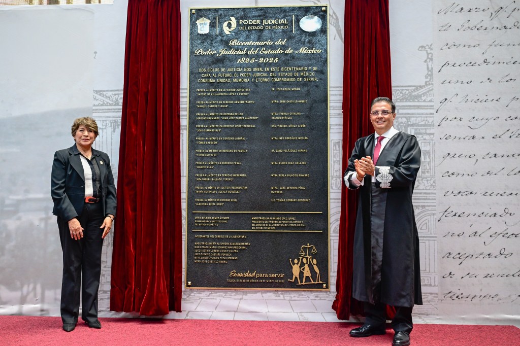 Toluca, Estado de México, 28 de Marzo 2025 . – “La Cuarta Transformación, no es sólo un cambio de régimen político, es un nuevo aliento para renovar nuestras instituciones y el ejercicio del poder público en favor del pueblo” destacó la Gobernadora Delfina Gómez Álvarez durante la ceremonia conmemorativa por los dos siglos del Poder Judicial del Estado de México, celebrando la voluntad para sumarse a la transformación que se vivirá el próximo 1 de junio, con la primera elección de jueces y magistrados a través del voto popular.