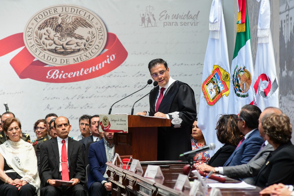 La Mandataria mexiquense reconoció a quienes, con vocación de servicio, han dado su vida al ejercicio de la judicatura en la entidad, subrayando que desde hace dos siglos el Poder Judicial del Estado de México es un pilar esencial para la protección de los derechos y la seguridad de las y los mexiquenses.