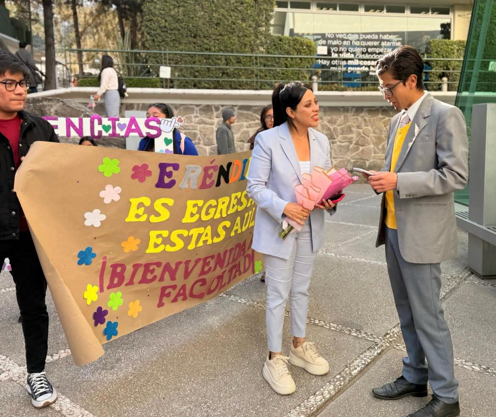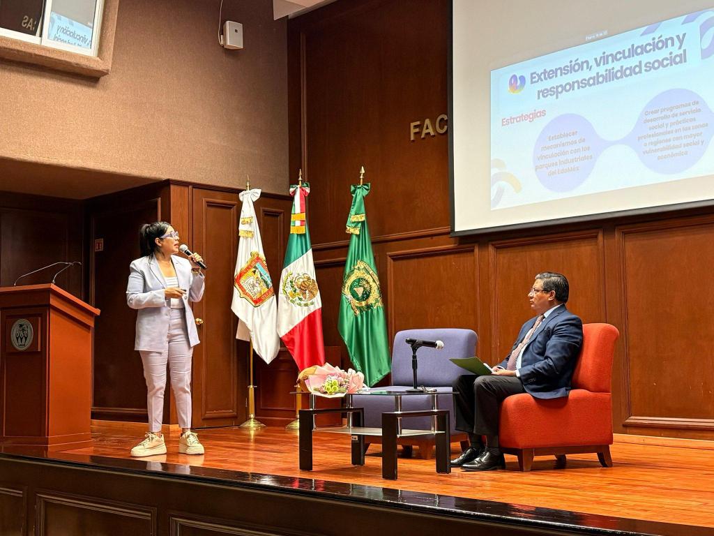 «Regresar a casa siempre es especial», expresó con una sonrisa, al ser recibida por un cálido aplauso de docentes y estudiantes que celebraron su presencia. «La Facultad de Ciencias Políticas y Sociales fue mi punto de partida en la #UAEMéx, el espacio donde llegué con grandes sueños y metas. Hoy, vuelvo con un compromiso firme: fortalecer el pensamiento crítico, la participación y la formación integral de nuestra comunidad universitaria», agregó.